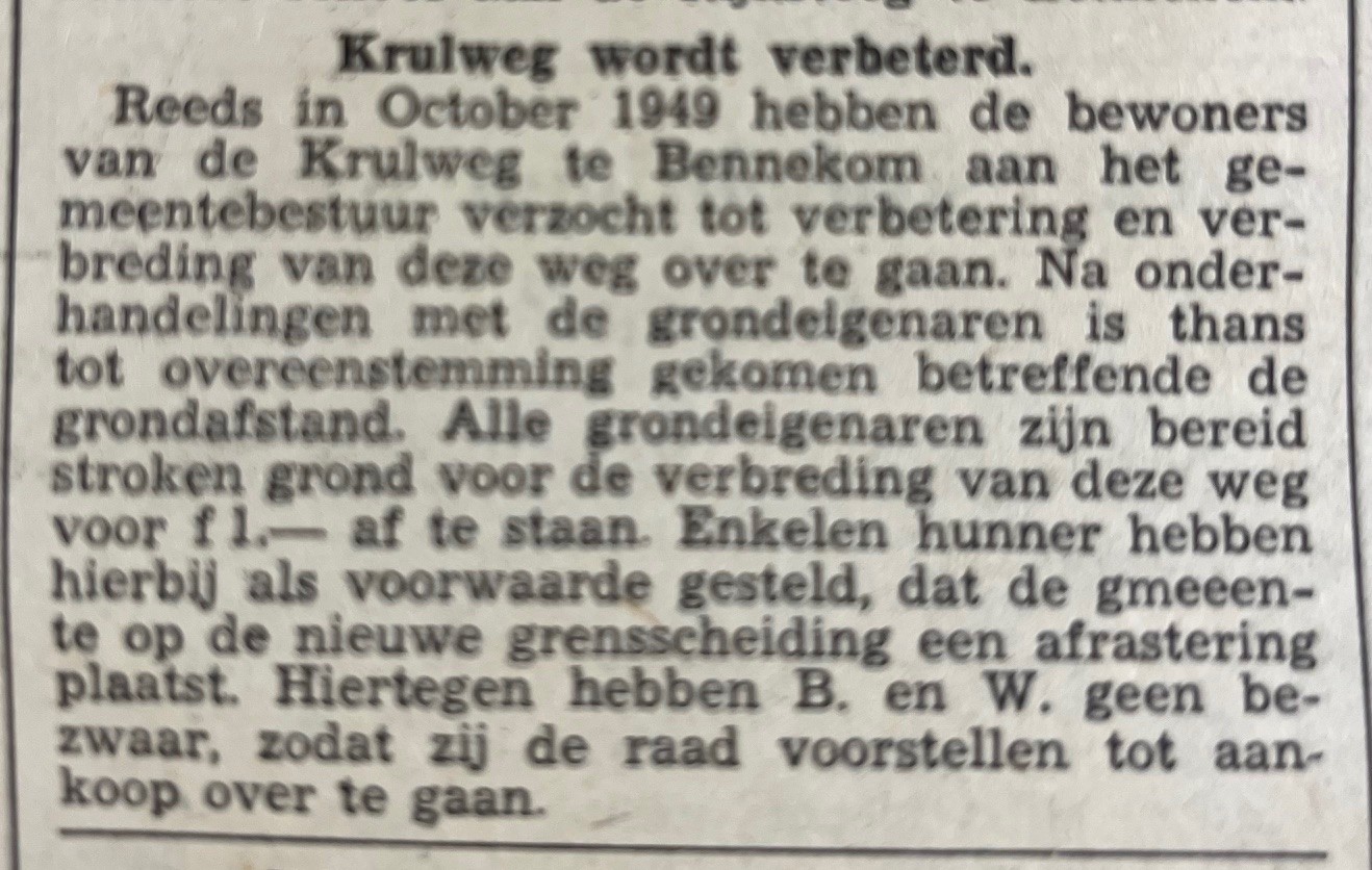 Ook in “Bennekomwasenis”, op 2 juli 2024, nummer 139, besteedde Jan van Eck aandacht aan de Krulweg.