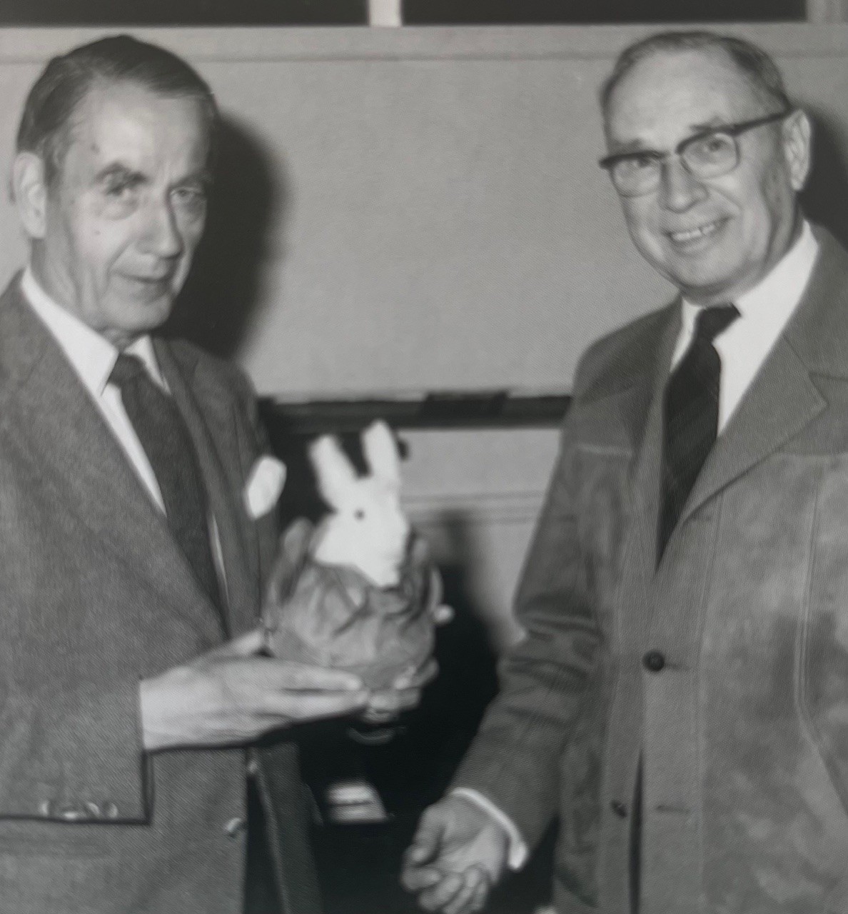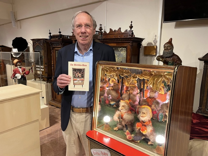 Het eerste cadeau dat de Vrienden schonken was dit aandoenlijke konijntje dat al 50 jaar gebruikt wordt bij de rondleidingen. Het laatste cadeau was een prachtige BIMBOBOX. Een bimbobox is een soort glazen kast, waarin een aapjesorkest muziek gaat spelen en dansen zodra je er een muntje in gooit. De voorzitter van de “Vrienden”, Wim van Kalleveen, schreef een prachtig boekje bij dit aapjesorkest.