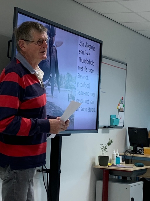 Twee jaar geleden op 11 november 2023 herdachten we bij het monument voor Dolor A. Martin dat het die dag 80 jaar geleden is dat de Amerikaanse piloot Dolor Alfred Martin in zijn vliegtuig bij de Krommesteeg omkwam. Na een welkom door onze voorzitter Bert Mulder kreeg Jan van Eck het woord, hij bracht een indringende groet over van Stuart Martin uit de VS, de zoon van Dolor Martin.