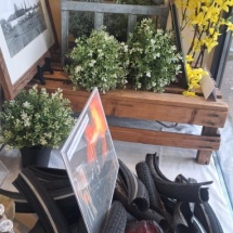 Maar ja als je zo veel mooie spullen verzamelt wil je ze ook graag laten zien. In 2013 ontstond het idee dat een etalage van AH in Bennekom daarvoor zou kunnen dien. De inrichting van de etalage werd bekostigd met de opbrengst van mokken met historische foto’s. Klanten van Albert Heijn konden sparen om een serie van acht bekers met korting te kunnen aanschaffen. Dit leverde vijfhonderd euro op voor de etalage die gesitueerd is naast Pearl. AH stelde de etalage aan de vereniging beschikbaar. Voor het ontwerp tekende Jerry Klok van Bureau Driepas, ook ontwerper van de huisstijl van Oud-Bennekom.