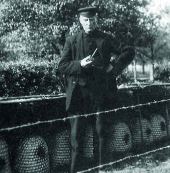 Afb. 2. Geurt van den Brink bij zijn bijenkorven