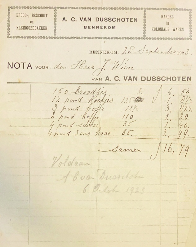 Afb. 3. Rekening A.C. van Dusschoten, 1923