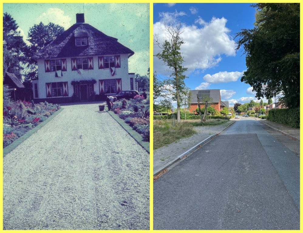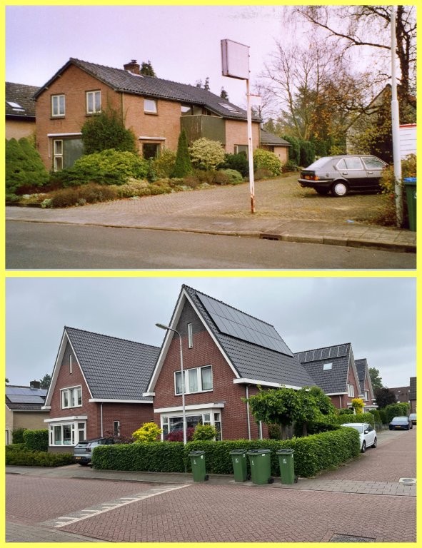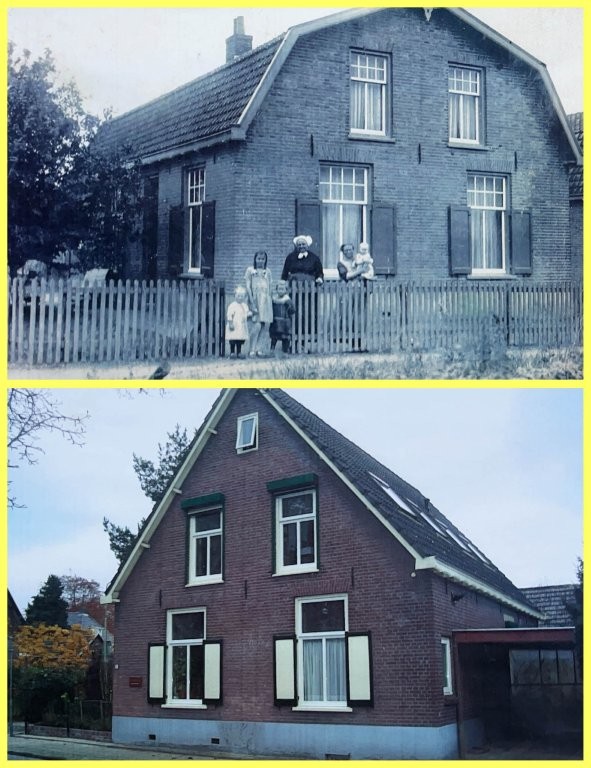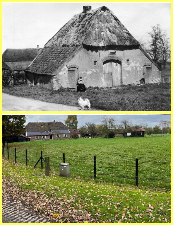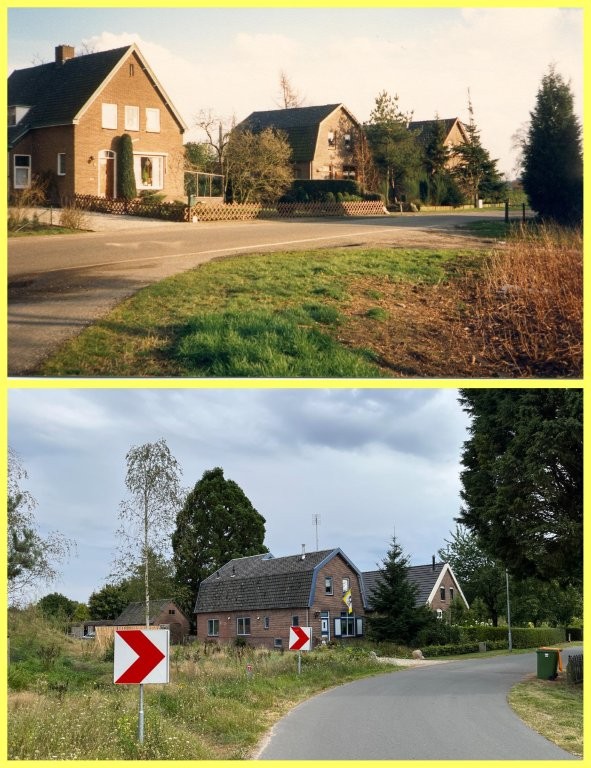 Dit huis is hagelnieuw en staat er op de nieuwe foto nog net zo, maar het is nu wel helemaal verscholen achter struiken. De oude houten schuur achter het huis is gesloopt, daar staat nu een nieuw woonhuis.