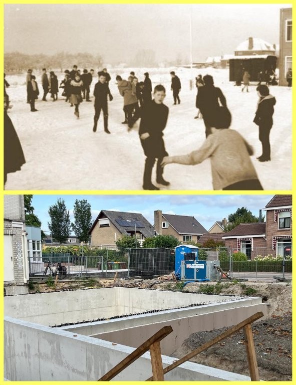 Hier zie je de Bennekomse jeugd plezier maken in tijden dat we nog echte winters hadden. Op de foto ziet u een braakliggend terrein. Op dit veldje kwam de bibliotheek en de sportschool van Jaap Venendaal. Die twee panden zijn ook alweer gesloopt. Nu staan er een paar levensloopbestendig huizen, op de plek van de sportschool worden nu appartementen gebouwd. Een speelplekje voor de jeugd is tegenwoordig niet zo belangrijk meer.