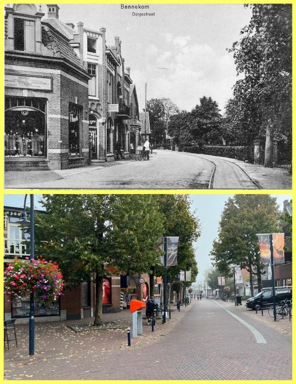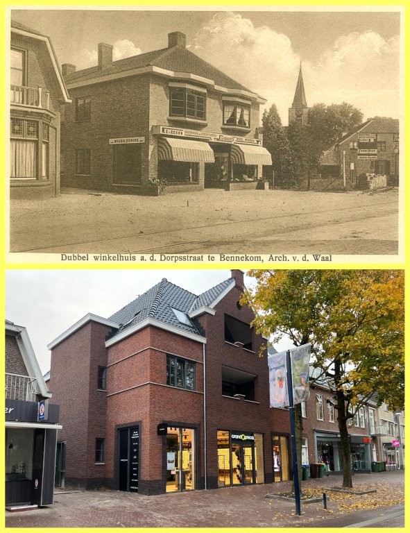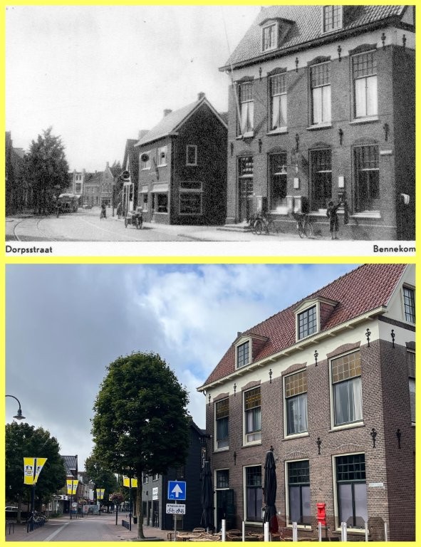 Aan de bebouwing van dit deel van Bennekom is in de afgelopen halve eeuw niet veel veranderd. Er kwamen overal andere ondernemers in de bestaande panden en er kwam een nieuwe boom aan de Dorpsstraat, maar de panden bleven aan de buitenkant grotendeels hetzelfde.