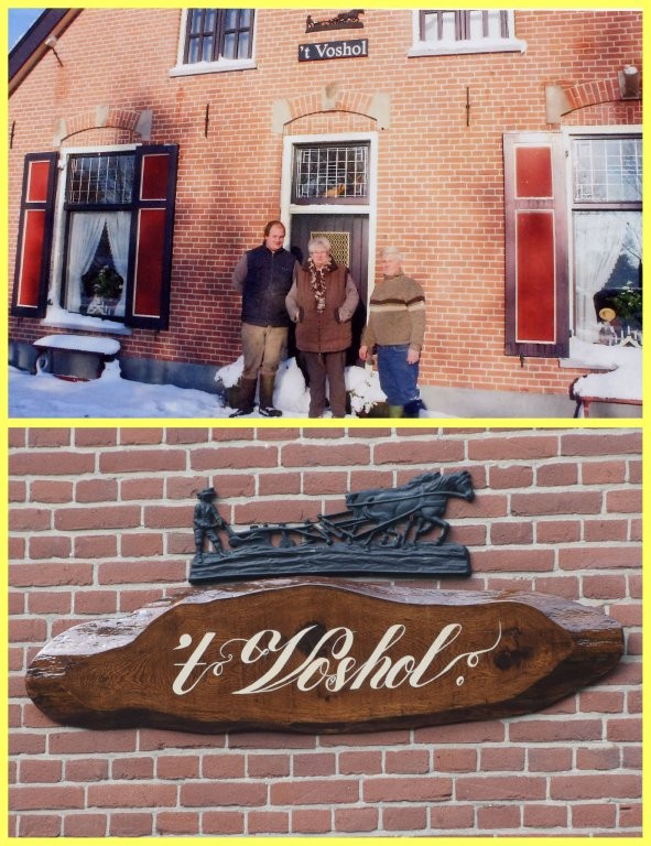 Boerderij ‘t Voshol behoorde vroeger tot het landgoed van kasteel Hoekelum. De naam ‘t Voshol stond echter nooit op de gevel. Op initiatief van onze vereniging kwam er in 2012 een bord met de naam op de gevel. Helaas was de kwaliteit van het bord niet erg goed, na een jaar of tien viel het van de gevel. Het duurde even maar nu zit er gelukkig toch weer een fraai naambord op de gevel.