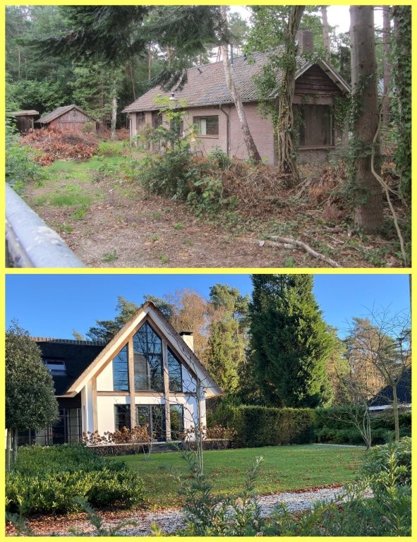 Toen het afgebroken werd stond het ook al een paar jaar leeg, het verval was al ingetreden. Er was ook al jaren niets aan de tuin gedaan, in de vergunningsaanvraag voor het nieuwe huis stond dat er maar liefst 65 bomen (boompjes) gerooid moesten worden. De bewoners van het nieuwe huis kunnen nu goed om zich heen kijken.