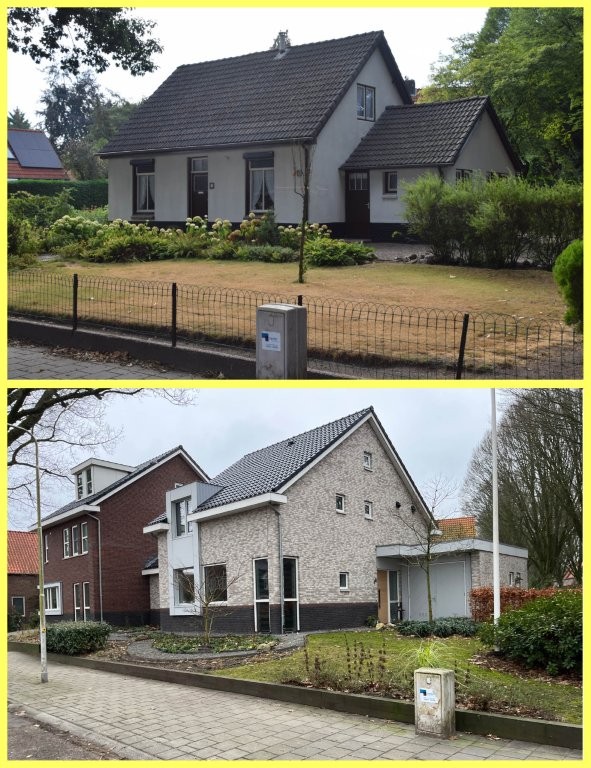 Zo links en rechts wordt er in ons dorp nog wel eens een huis afgebroken voor nieuwbouw. Soms onbegrijpelijk, soms ook heel begrijpelijk. Op Selterskampweg 58 stond helemaal tussen de bomen dit huisje verscholen. Het was een huisje dat niet zo bij de stijl van huizen aan deze straat paste.