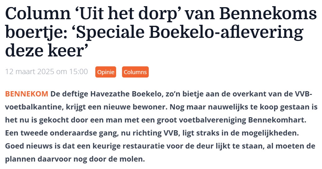 Maart 2025 kreeg Boekelo een nieuwe eigenaar. “Het Boertje”, de columnist van het toenmalige Bennekoms Nieuwsblad, schreef er op 12 maart over.