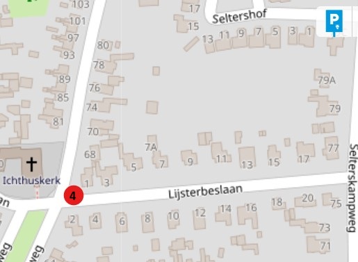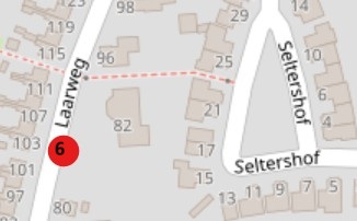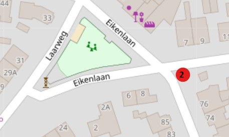 U staat op de rode stip en kijkt de Laarweg in richting Ichtuskerk