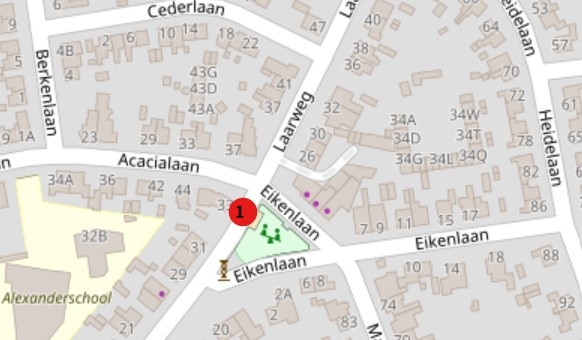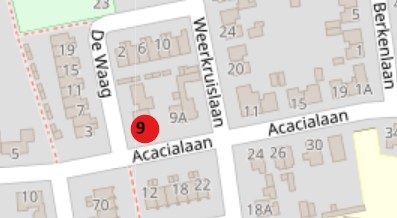 De rode stip, Acacialaan 9, het huis staat er nog. Een tijdlang woonde hier de directeur van de Boerenbond. In 2022 verscheen op deze website een heel artikel over deze woning: https://oudbennekom.nl/woonhuis-acacialaan-9-100-jaar/