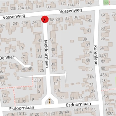 U staat op de rode stip in de Meidoornlaan en kijkt richting Esdoornlaan