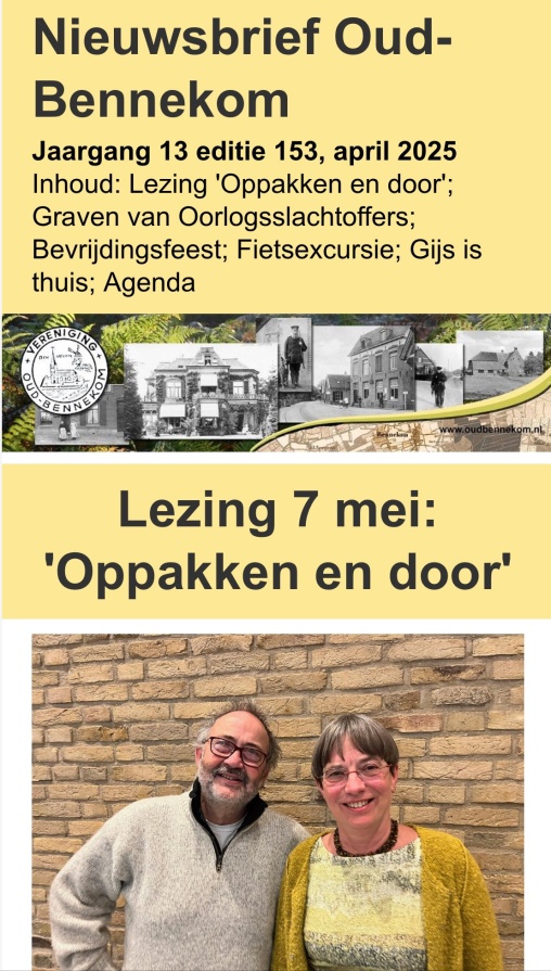 Ontvangt u de nieuwsbrief nog niet en wilt u goed op de hoogte blijven van alles wat er bij Oud-Bennekom gebeurt en te doen is kunt u zich aanmelden via nieuwsbrief@oudbennekom.nl voor onze gratis digitale nieuwsbrief, die circa twaalf keer per jaar verschijnt.