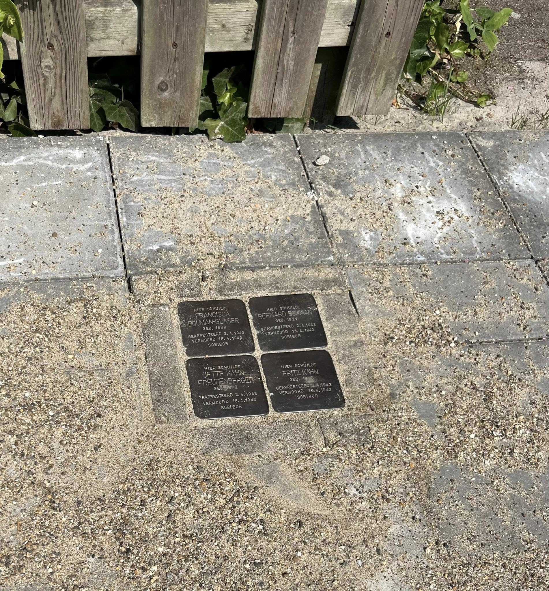 De Stolpersteine van Francisca Bouman-Glaser, haar zoon Bernard en van Jette Kahn-Freudenberger en haar zoon Fritz waren daarom tijdelijk weggehaald, maar inmiddels zijn ze teruggekeerd in het voetpad langs de Bovenweg.