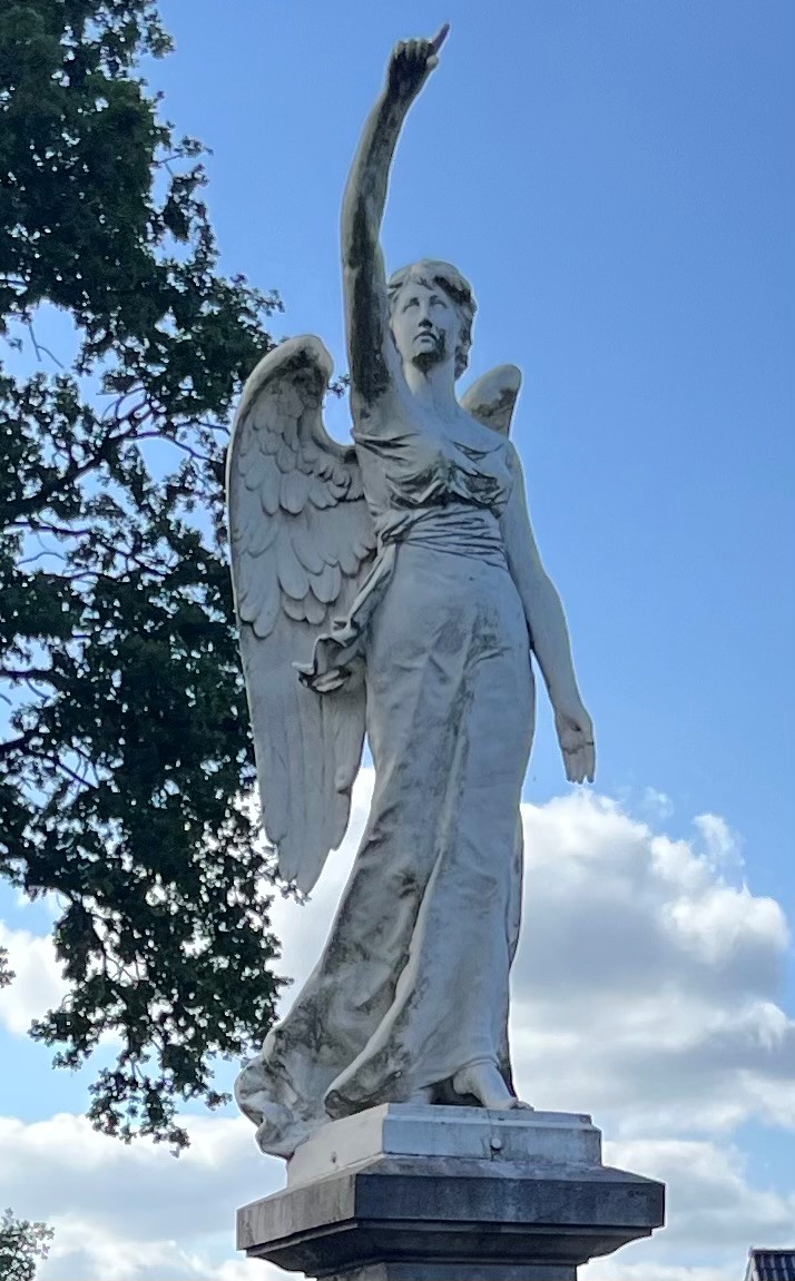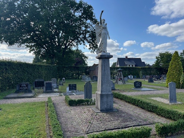 Onlangs waren we opnieuw een bezoek aan de Hervormde Begraafplaats in Tubbergen. Ook daar is één van de meest in het oog springende monumenten de engel bij de ingang van de begraafplaats evenals in Bennekom.