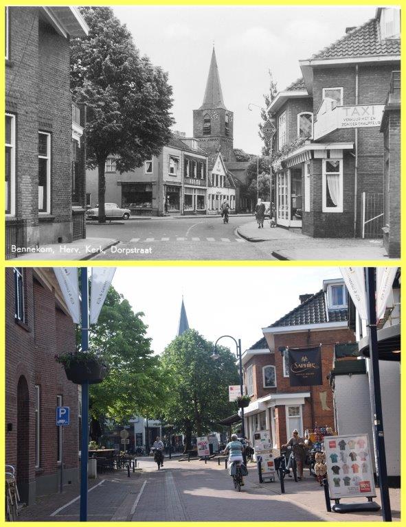Aan de bebouwing van dit deel van Bennekom is in de afgelopen halve eeuw niet veel veranderd. Er kwamen overal andere ondernemers in de bestaande panden en er kwam een nieuwe boom aan de Dorpsstraat, maar de panden bleven aan de buitenkant grotendeels hetzelfde.