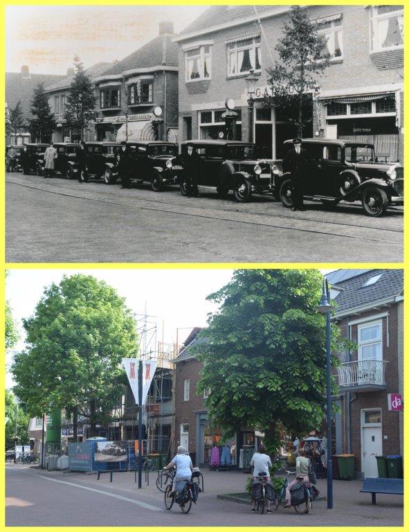 De foto is voor de oorlog genomen, het pand, en het pand links ervan zijn in de 2e wereldoorlog vanuit de Betuwe platgeschoten door de geallieerden. Het garagebedrijf werd gebruikt door de Duitse bezetter, vandaar dat het plat moest. Na de oorlog is het allemaal weer opgebouwd, de garage ongeveer in dezelfde stijl, maar de winkel links ervan werd helemaal anders. In de winkel links ervan kwam damesmodezaak Dokter, dat werd later de winkel van Woudstra en onlangs is het afgebroken en nu komt er iets heel nieuws.